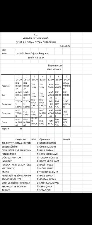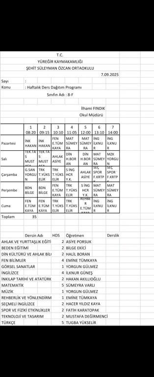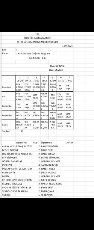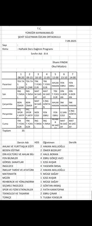 8 Eylül 2025 tarihinden itibaren uygulanacak ders programları
